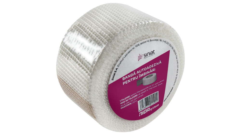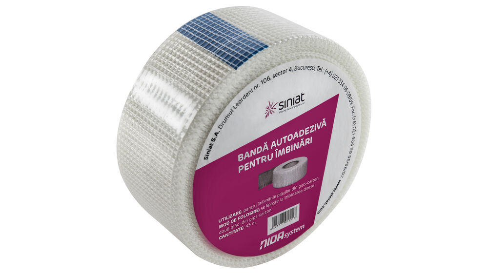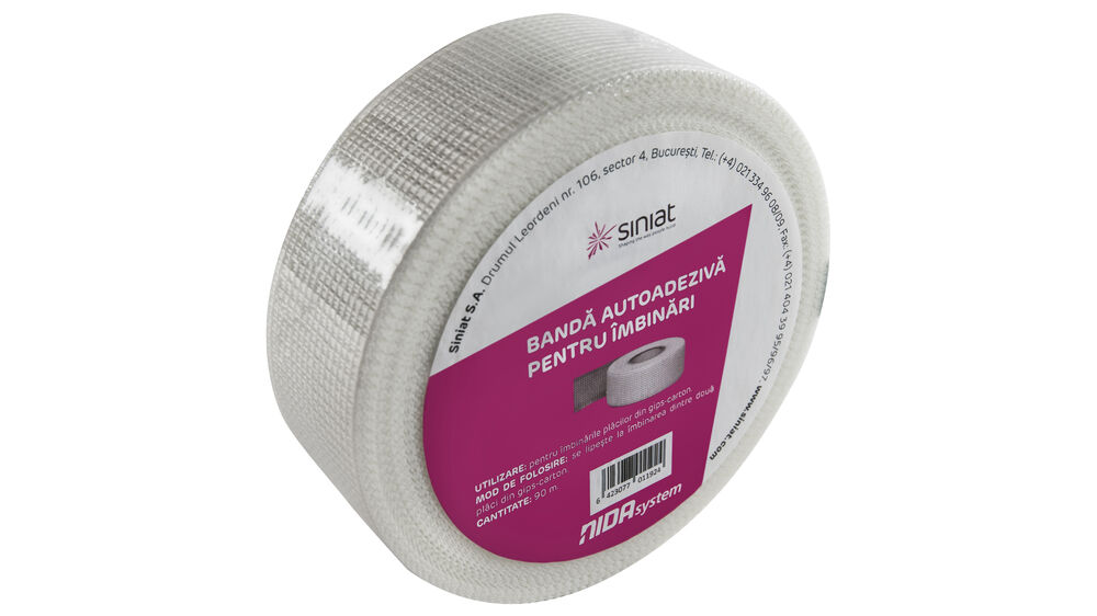The self-adhesive tape is a fiberglass tape in the form of a mesh (3x3mm), with an adhesive layer that adheres to the cardboard surface of plasterboards.