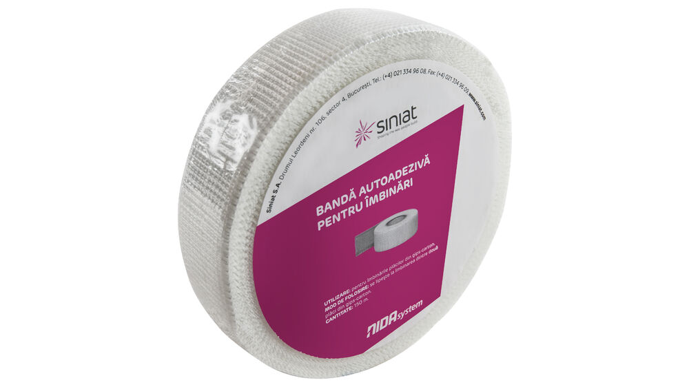 The self-adhesive tape is a fiberglass tape in the form of a mesh (3x3mm), with an adhesive layer that adheres to the cardboard surface of plasterboards.